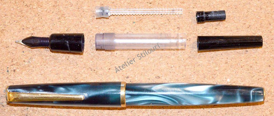 10/07/2020Inca un Centropen no 10016 ajuns in atelier. La fel ca si celelalte doua deja publicate aici, fabricat in Cehoslovacia in perioada 1965-1970, celuloid foarte frumos, in pattern marmorat, nuante gri/verzui translucid. Penita este una neoriginala, o Iridium Germany stub dublu ton, avariata in varf. Pistonul este similar cu cel instalat pe modelele deja publicate.