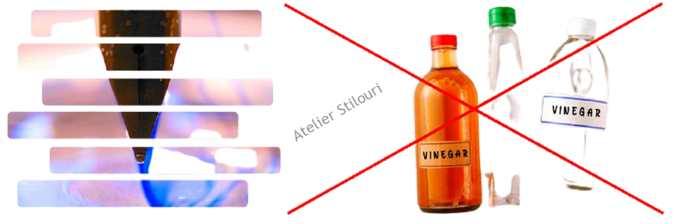 In caz ca nu ati scos sau nu ati putut scoate penita si feedul: este notoriu ca penitele si feedurile de pe modelele Flaro sunt mai dificil de scos, pentru ca la modelul standard cu penita ascunsa sau semiascunsa Flaro, priza pe penita/feed este aproape imposibil de facut cu metode clasice (foaie cauciuc, pensa prindere, etc). Evident, o inmuiere in ultrasonic o 1.2 ora sau in solutie de ammonia 1/10 pentru vreo 6-8 ore ar trebui sa elibereze depunerile, pentru ca penita sa iasa mai usor. Dar uneori nici asta nu ajuta.