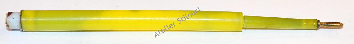 Rezerva asta este una necunoscuta pentru mine, nu am mai vazut modelul pe nici un pix romanesc. Produsa la Sibiu? Posibil si probabil, pentru ca dupa calitate, ar cam arata produsa acolo. Importata? Si asta e posibil, desi mai putin probabil. Varful este unul normal pentru rezervele anilor 70, incet incet disparand prin anii 80 cu cele groase, dar ramase in fabricatie la Flaro pana dupa 1989.