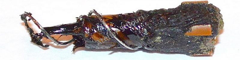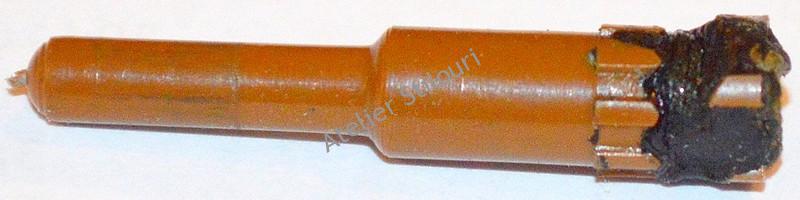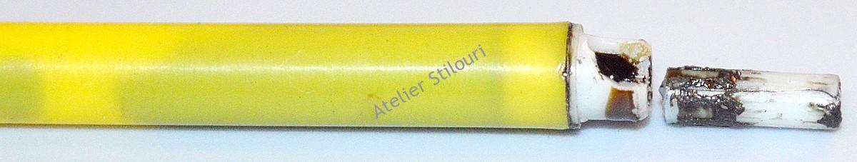 Initial, rezerva avea un segment subtire, parte din capatul rezervei, si care interactiona cu sistemul de clickere. Cu tot cu segmentul respectiv, pasta avea lungimea de 107mm, exact cat au rezervele clasice Flaro, gasit rupt, si infipt in clickerul inferior.