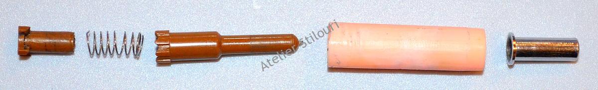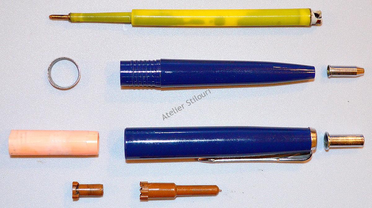 Cateva cuvinte despre mecanismul intern al acestui model de pix romanesc: pe scurt, este unul complicat, pentru ceva fabricat la Sibiu. Consta in 5 elemente, care sunt fabricate la tolerante ce pot face ca intregul proces de functionare sa cedeze sau sa se blocheze. Pentru a face lucrurile si mai interesante, rezerva (pasta de pix) este una pe care nu am mai vazut'o la nici un model romanesc, si pare nici mai mult nici mai putin decat o incercare de a copia rezervele Parker (ma rog, acel model de rezerve).