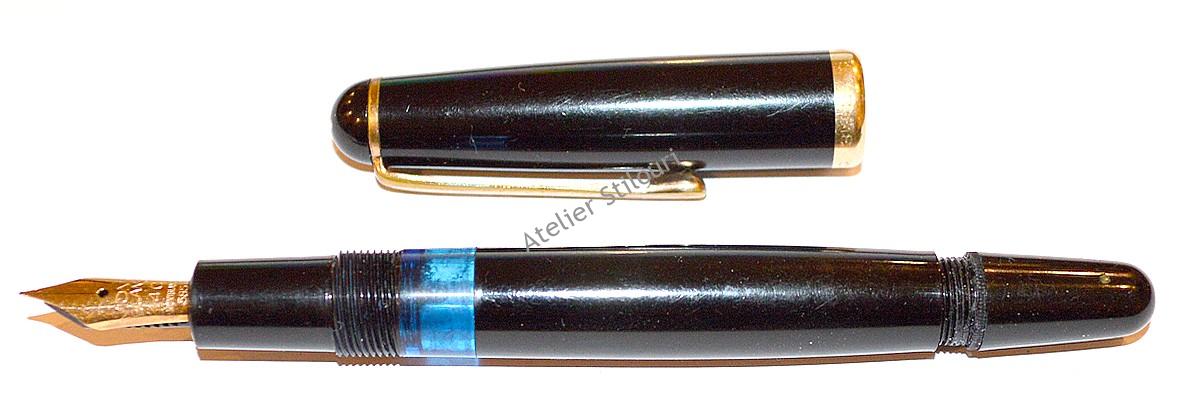 26/11/2021Un model de stilou fabricat in Germania, gravat GRIFFON, aproximativ 1940-1950. Probabil un sub-brand de la vreun producator german, nu stiu sigur. Celuloid si ebonita pentru sectiunea penitei si capac fals buton. Butonul si port-piston din ebonita (axul elicoidal) si termoplast. Port-garnitura este din ebonita, garnitura insasi fiind complet erodata.