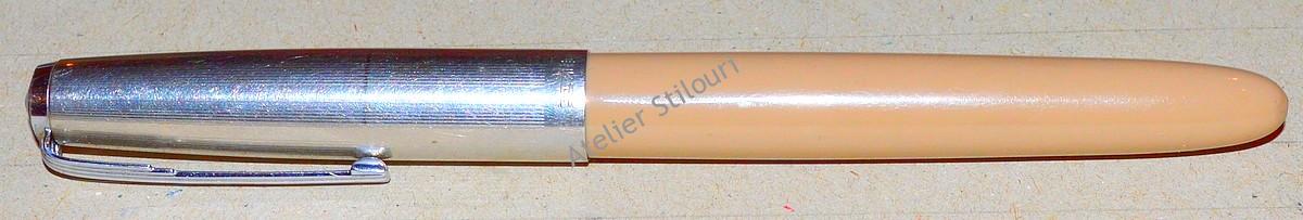 29/01/2022Hero in nuanta "Cocoa". produs in China de Shanghai Hero Pen Company. Anul fabricatiei poate fi banuit; in mod conservator, as zice anii 60's, probabl undeva in prima jumatate a acelui deceniu. Penita este una tubulara tip Parker 51, gravata 571/1958, 12K. Evident, incarcare aerometrica, cu tubul portsac inscriptionat in maniera stilourilor vintage Hero 100. In stare excelenta, trebuie doar demontat si curatat in/out, capilarele curatate si ele si ajustat debitul.