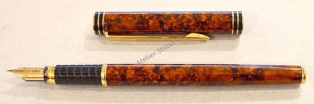 Clipul este otel, capacul prezentand 3 inele din metal galben, probabil otel placat. Clipul este prins definitiv in capac, prin sertizare cu frictiune intre capac si tubul interior al acestuia. Stiloul este parte a colectiei "Alte branduri vintage - Europa" a atelierului.