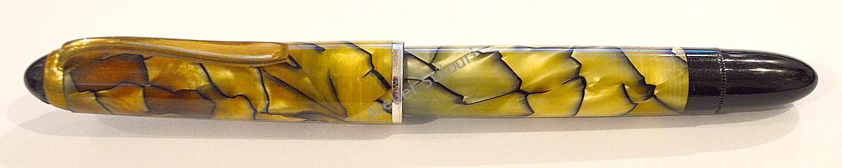 12/01/2019Stilou model LAMAR, produs in Germania cca 1965, manseta celuloid ambra cu negru, incarcare piston, garnitura siliconica, fereastra cerneala de culoare albastra, furnituri placate, penita otel generica, sectiune penita si buton piston plastic. Stiloul face parte din colectia " Germania Vintage" a atelierului.