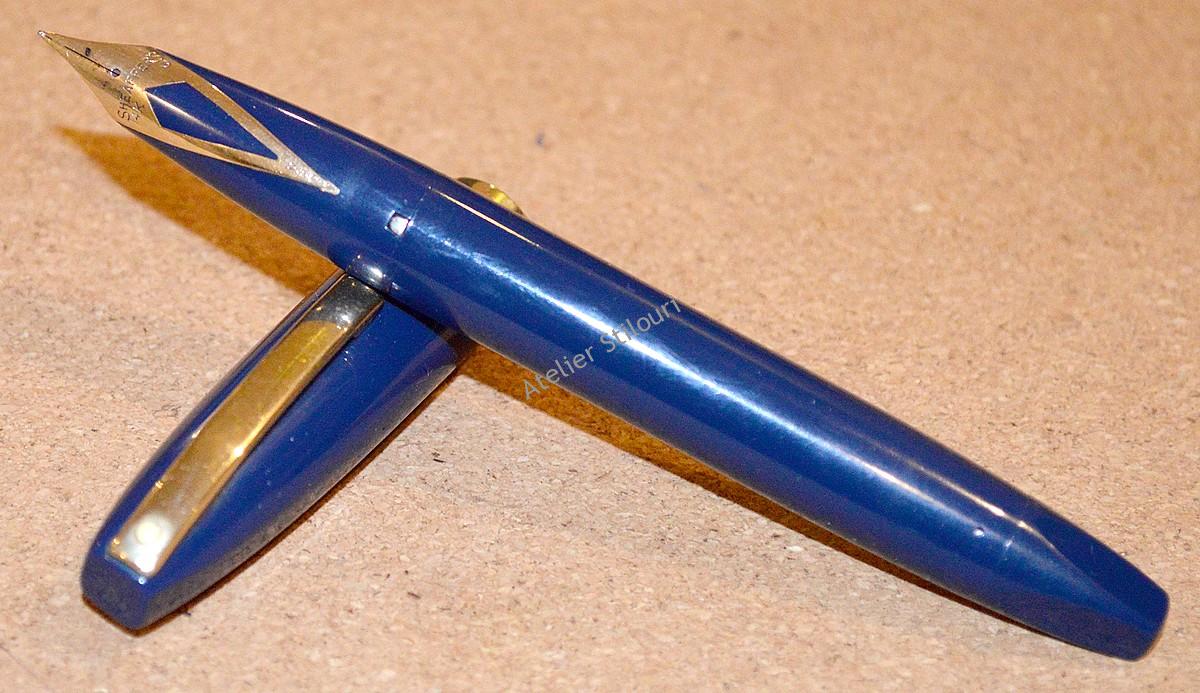 Reparatie completa, schimbata garnitura de plastic cu una siliconica, reparatie ax avans piston, curatare completa a depunerilor pietrificate de cerneala, reajustare si reslefuire penita, stiloul este complet functional.