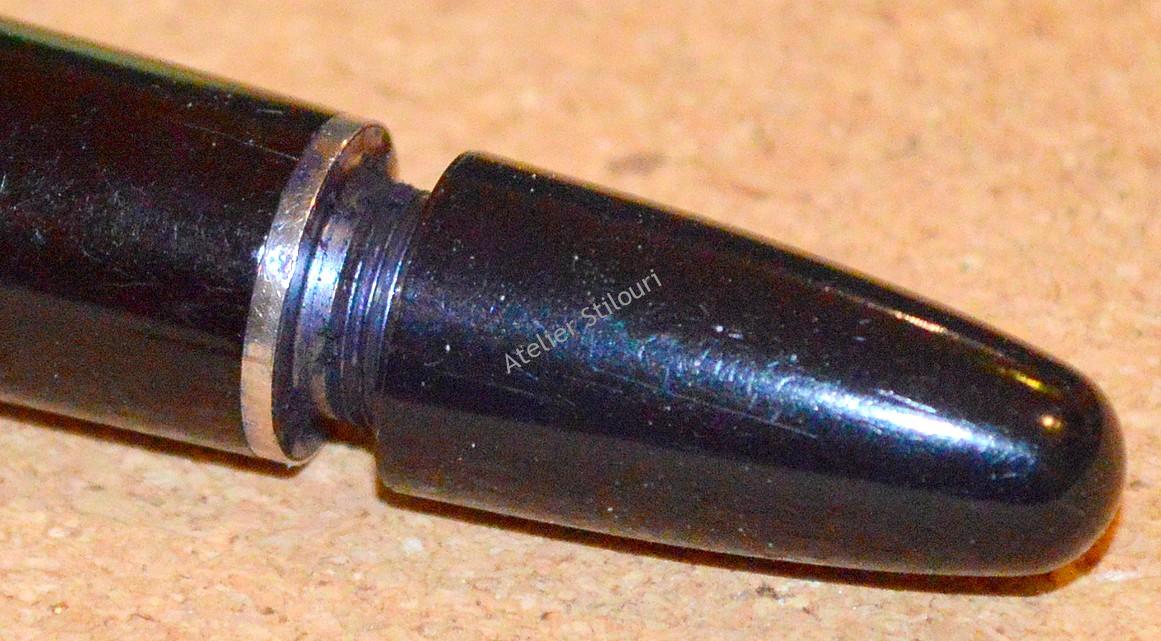 15/01/2020Un exemplar frumos de la Montblanc, model Meisterstuck no 146, de data asta un silver (accesorii argintii si nu galben/gold). Probleme cu penita, care este scoasa din bucsa si departata de feed (distantare mecanica, adica prin fortare), si geometria afectata. Posibil bucsa rupta in interior. Pistonul este defect, scapa cerneala, ceea ce arata ca fie garnitura este compromisa, fie corpul are o fisura undeva in partea superioara, posibil sub blocul piston.