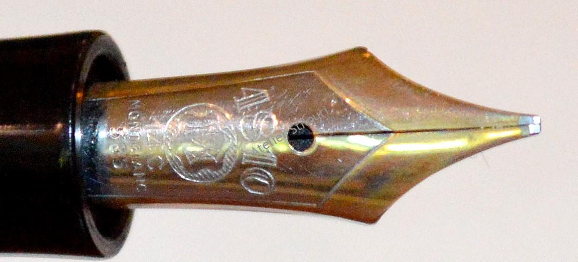 Demontat complet, elementele pistonului au fost curatate si reunite pentru a forma telescopul. O noua garnitura de pluta instalata, totul merge perfect. Penita este un crisp italic, excelenta.
