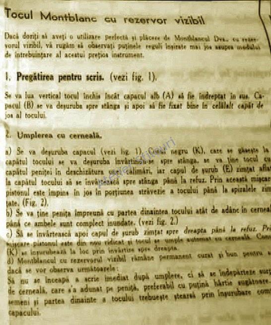 09/12/2020Prospect in limba romana pentru un stilou Montblanc 332. Produs intre 1930 - 1945, probail ca fost la vanzare in Romania undeva inaintea celui de'al doilea razboi mondial. Se mai gaseau la vanzare si dupa 1955, din cate am auzit. Desi nu cred ca exemplare noi din aceasts serie au fost importate in Reublica Populara Romana, nu este imposibil ca unele loturi ramase dupa WWII sa fie exportate, iar unele sa fie ajuns la noi, in cadrul "deschiderii" de dupa 1955..
