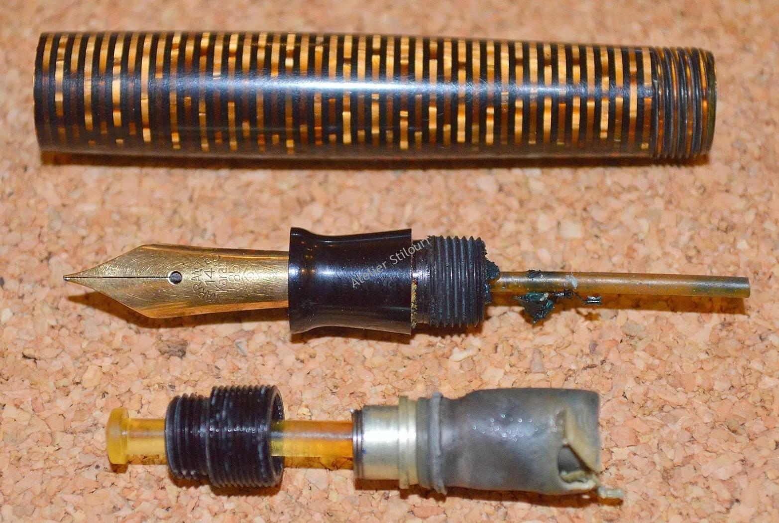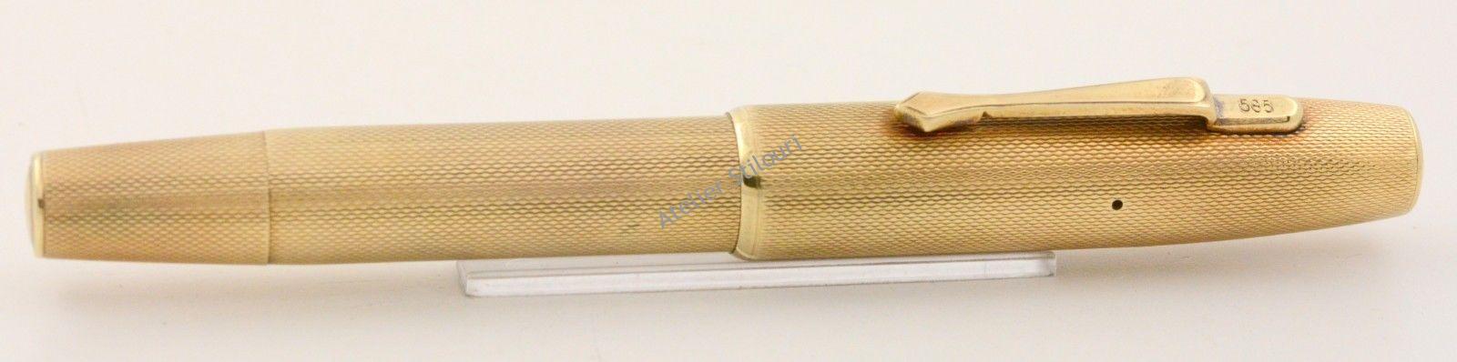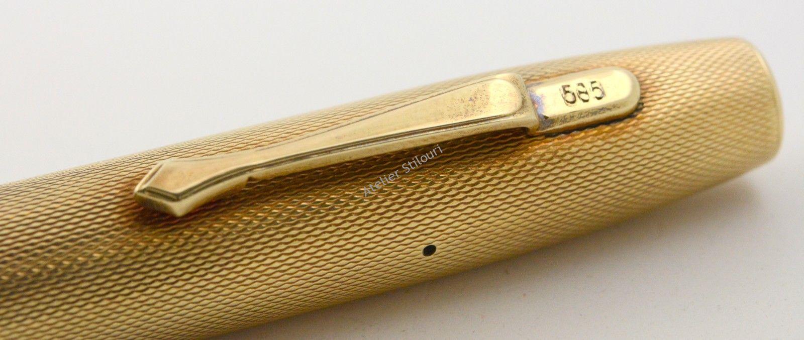 Corp si capac aur marcaj 585, incarcare piston captiv, penita originala 14kt.
