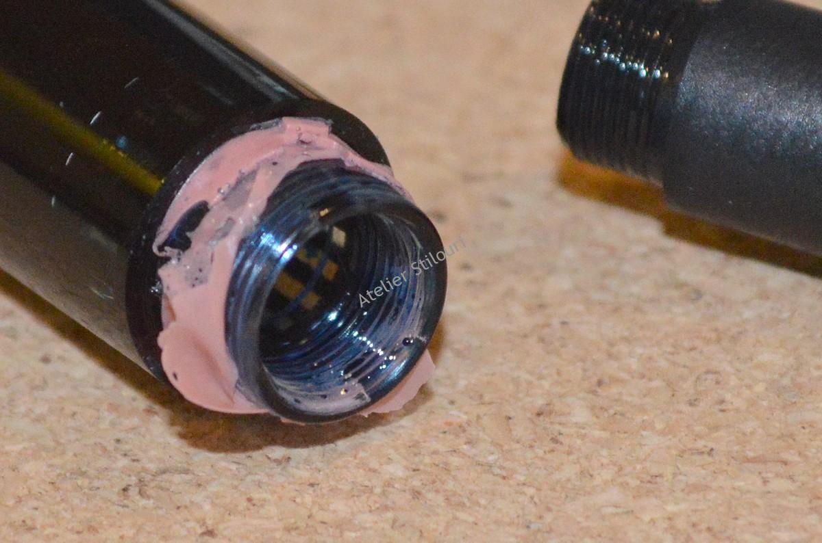 Cerneala inventata de cei de la Parker era una care se usca prin penetrarea fibrelor de hartie a paginii (si nu prin evaporarea apei din compus, ca pana atunci). Cerneala era extra alcalina si cu un procentaj serios de alcool izopropilic, ceea ce o facea in schimb coroziva. Din cauza asta, nu putea fi folosita in stilouri de celuloid (cu plastic in compunere sau nu). Parker avea nevoie pentru modelul 51 de un compus mult mai protejat impotriva coroziunii, asa ca au ales sa foloseasca Lucitul, un nou compus termoplast, produs prin suprapunerea / combinarea unui polimermetil (un atom carbon, trei hidrogen) pe o baza de metilester (incolor, lichid). Rezultatul a fost un compus ce parea ca este incasabil si cu aspect de sticla. In aceeasi perioada, cupolele de carlinga a avioanelor incepusera sa fie produse din acelasi compus, dar cu ceva modificari.