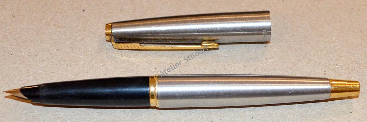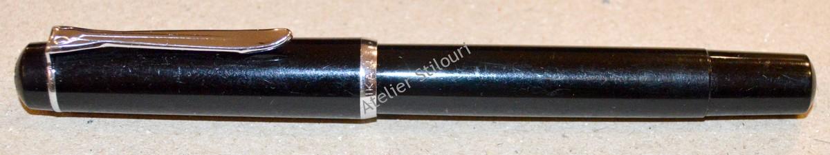 Micul Pelikan model M100, acril negru cu furnituri cromate. Venit in atelier pentru reglare debit si reparatia penitei.