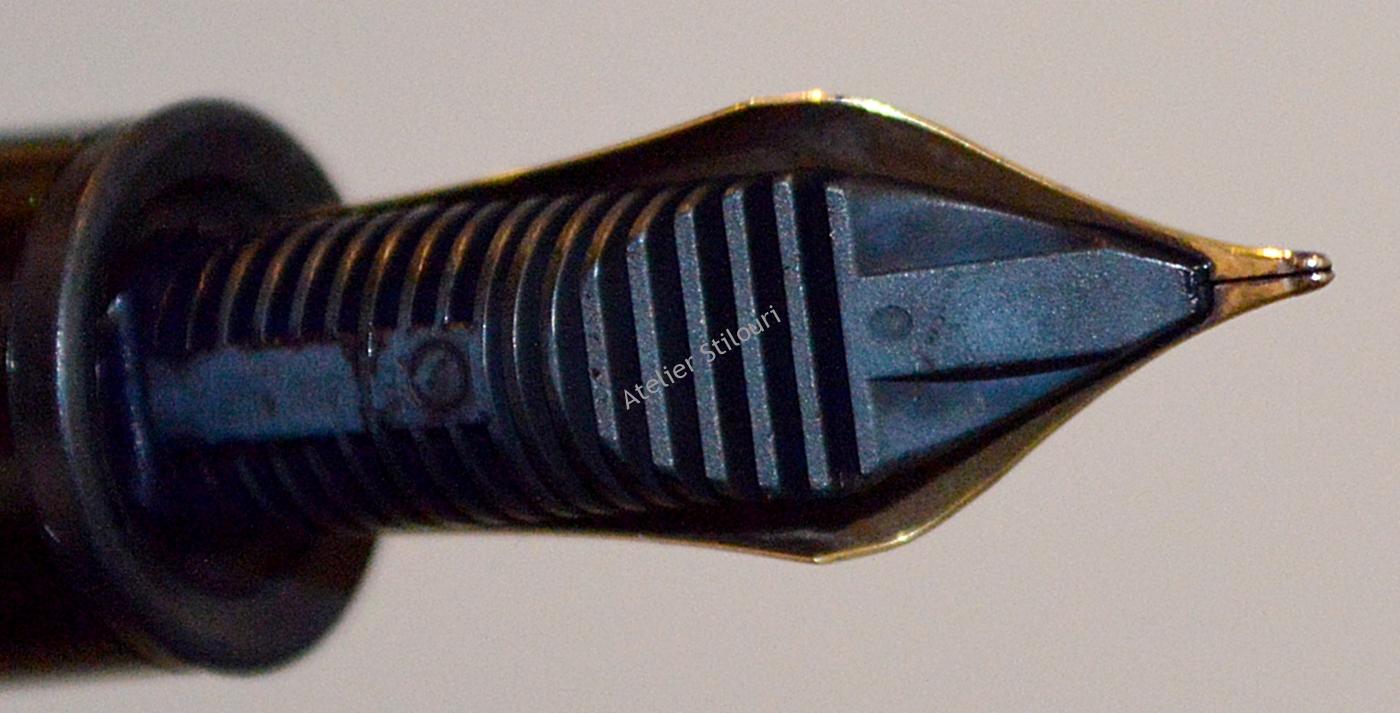- penita lovita in lateralul stang (vizual – penita cu varful in sus, sevron in fata)