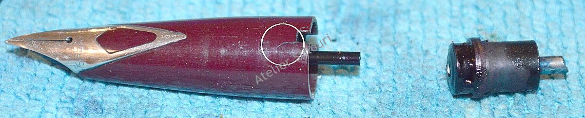 Fisura a sectiunii de penita, chiar pe inelul de frictiune.