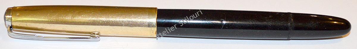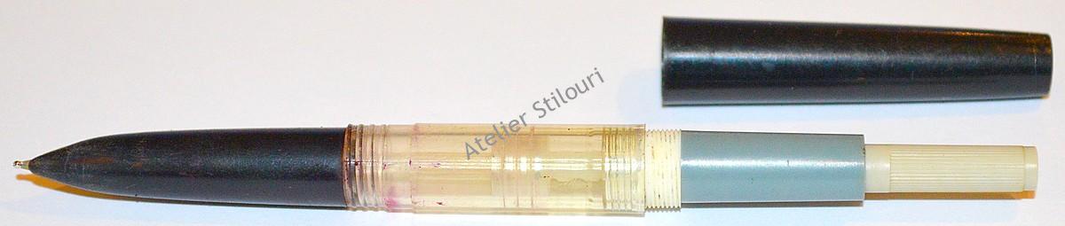 Model Soyuz, perioada 1962 – 1970, din gama “Moskva”, fabricat la Leningrad, un fel de copie Parker 51 (un frankenpen de fapt, are capacul de Parker 51 Godl Rolled cu clipul original pe modelul Soyuz) si penita de aur Parker 51 (Colectia SDI)