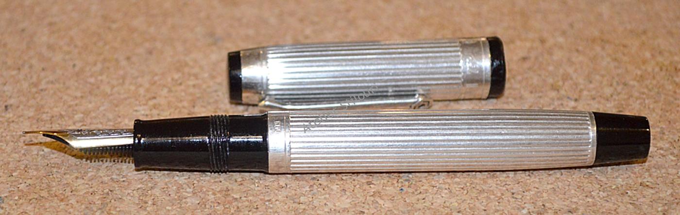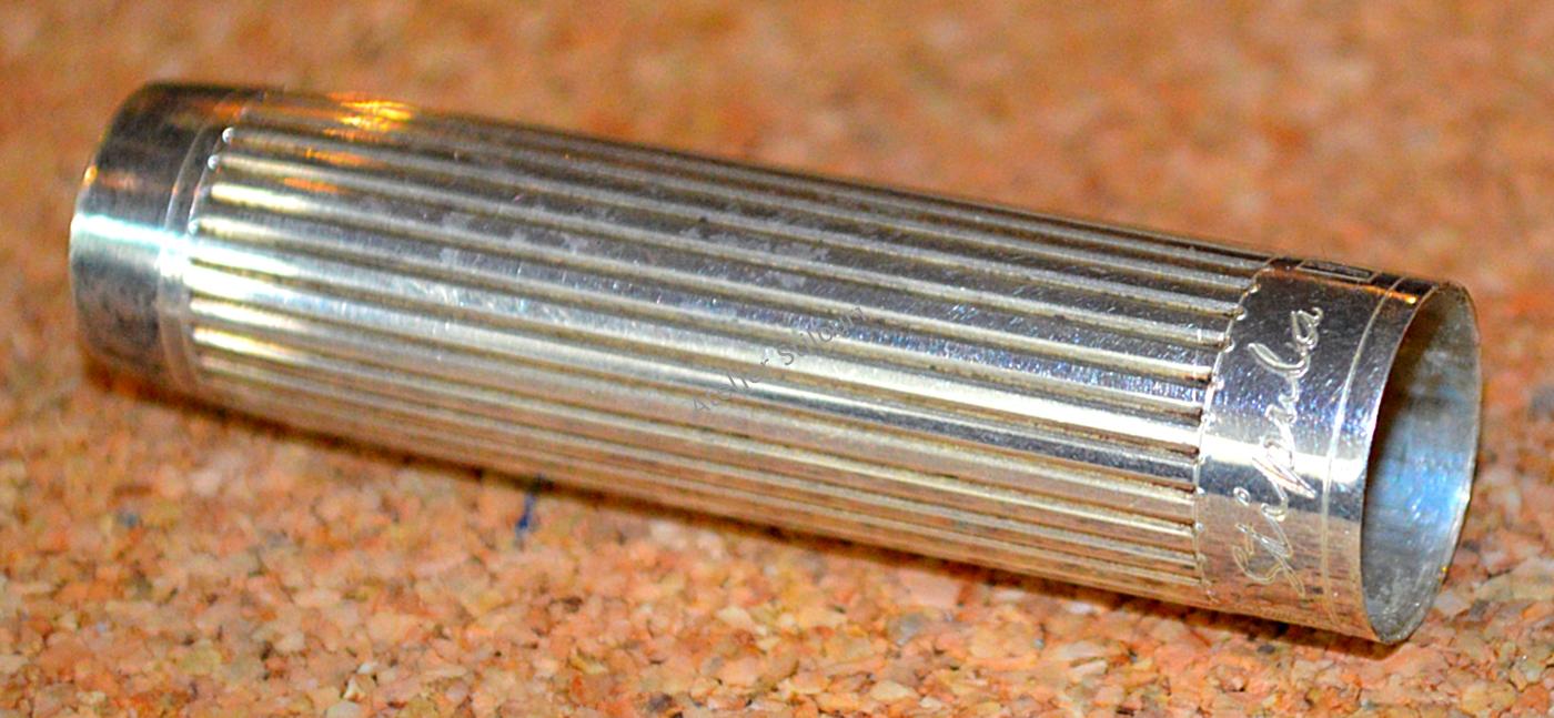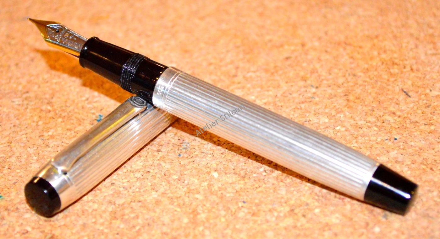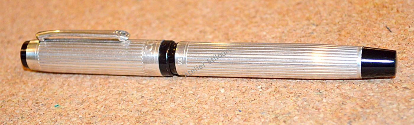 In fine, sa revenim la “cestiune”. Acest stilou a venit pentru restaurare aproape completa. Caracteristicile stiloului sunt: corp si capac de argint 950 pe suport de nitrat de celuloid, piese celuloid capat capac si corp, sectiune penita si sectiune intermediara nitrat de celuloid, penita 18kt marcata Stipula, incarcare c/c, gravuri de brand pe buza capacului si pe corp la baza spre sectiune penita, feed plastic, clip argint pe suport interior alpaca.