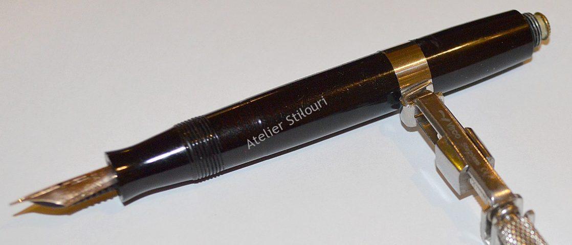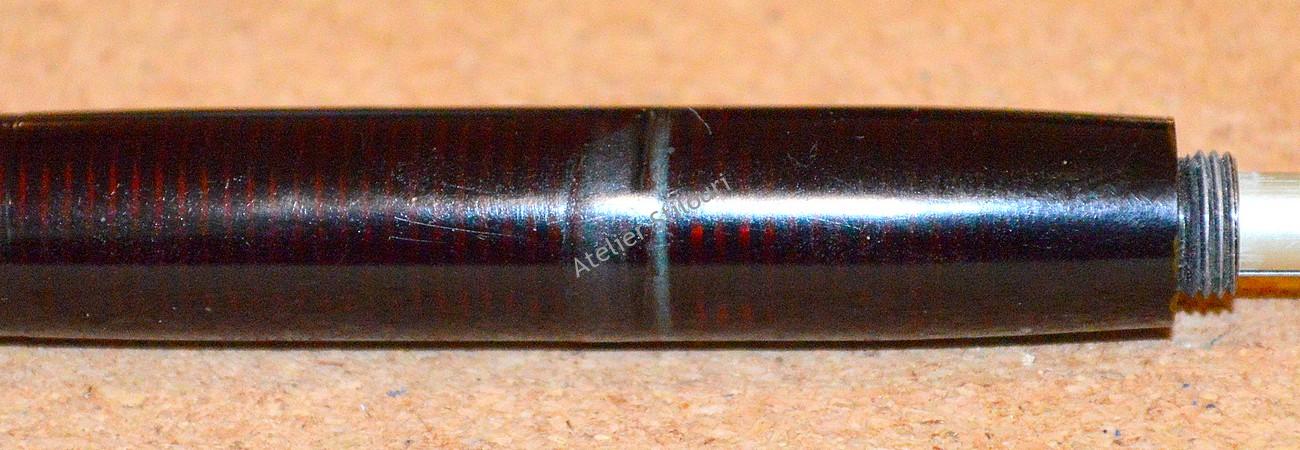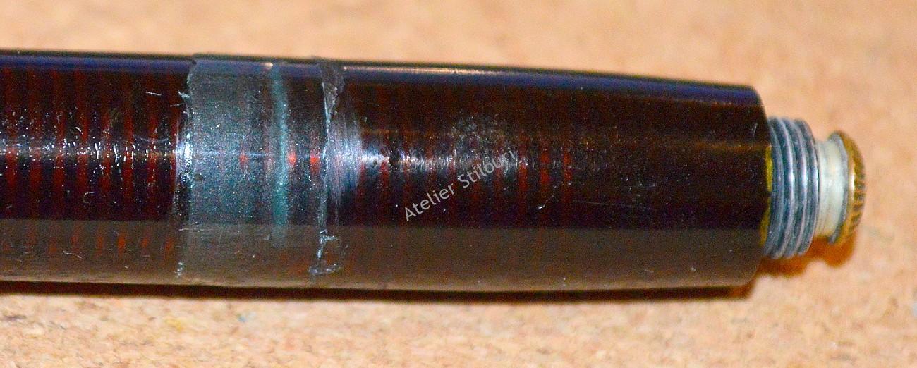 25/10/2019Corpul-rezervor de celuloid inelat a cedat intre inele, si a aparut o fisura de 1 cm semicirculara. Singura optiune a fost aplicarea unui segment de adeziv special pentru celuloid si fortarea adezivului in fisura. Problemele se puteau ivi in momentul in care 1) se forteaza adezivul in fisura si trece in rezervor (in timp rupand diafragma, care s’ar fi frecat incontinuu la incarcare), 2) adezivul nu polimerizeaza (si datorita fortarii in timpul prizei de contact cu corpul, trece prin fisura si se prelinge inauntrul corpului, 3) adeezivul polimerizeaza doar inafara fisurii (iar la scoaterea prizei, rupe sau largeste fisura fara a o suda).