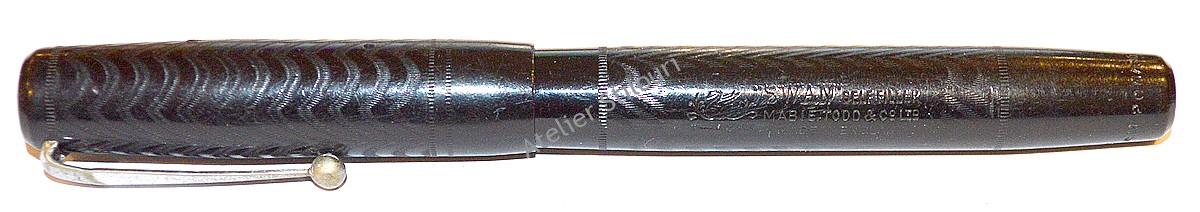 29/11/2021Model Swan n0. M2 fabricat in Anglia, ebonita randalinata (chased), venit in atelier pentru reparatie si repunere functiune sistem. Sectiunea penitei lipita, penita indoita, lipsa sac, lipsa bara interna, zgarieturi.
