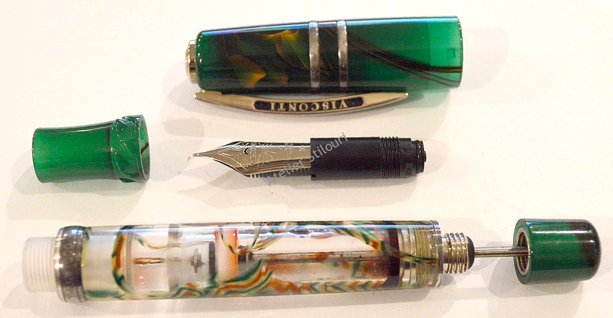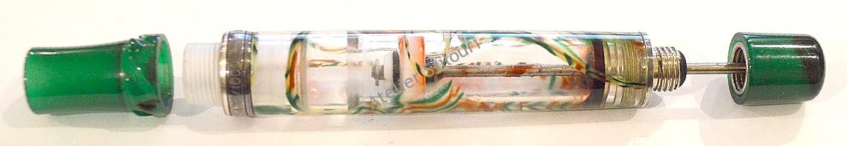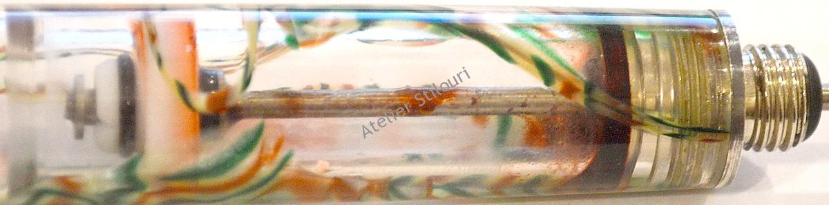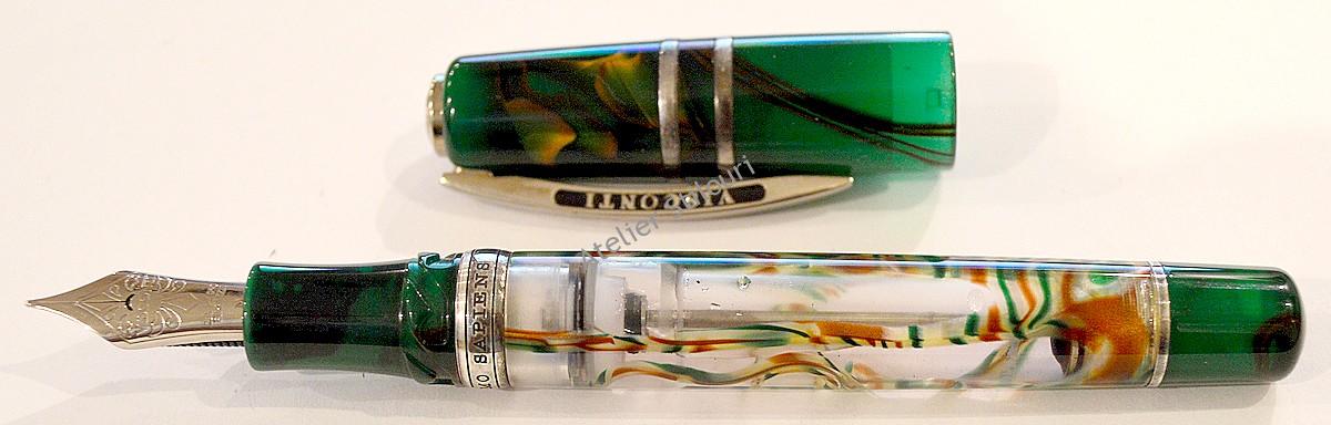 14/09/2022Visconti, modelul Homo Sapiens, sub-model "Florentine Hills", un demonstrator excelent de la firma italiana. Incarcare vac, penita (evident!) 23k Palladium. Venit in atelier pentru o serie de defecte: depuneri pietrificate in rezervor, sectiunea penitei complet detasata de pe corp, capac cu depuneri pietrificate.