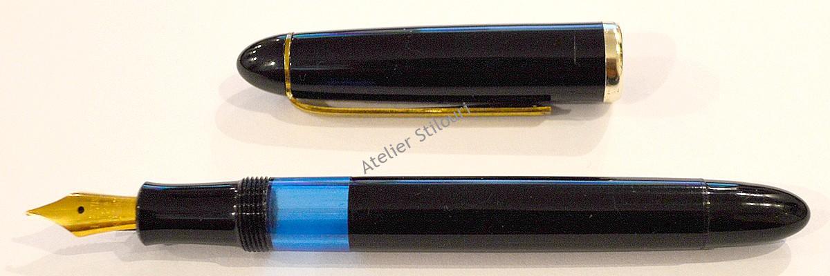 Acest stilou prezentat aici a fost gasit intr’un lot de stilouri avariate. Avea lipsa buton capac, lipsa penita si feed, cu mecanismul de incarcare avariat si lamela interna ruginita, inscriptiile sterse, sectiune penita sudata de corp. De ex, desfacerea sectiunii penitei de pe corp a luat vreo doua zile, alternand baie ultrasonic / incalzire / ultrasonic / incalzire, pana a cedat si a iesit.