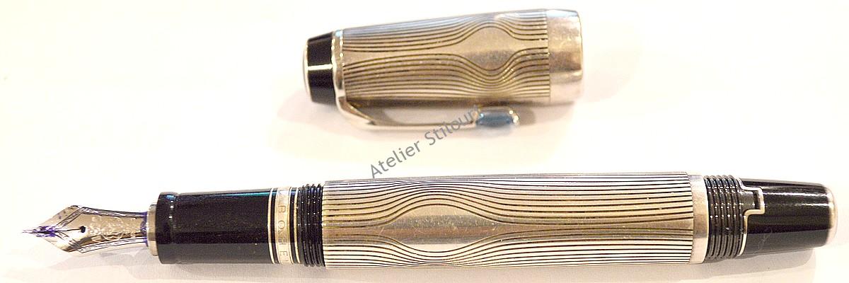 Feedul a fost ajustat pentru un flow normal, prin sigilarea spatiului gol din interiorul sectiunii (operatiune reversibila). Penita a fost ajustata pentru un unghi de lucru mai ingrijit decat cel dinainte, gravurile curatate si refacute cu pigment rosu.