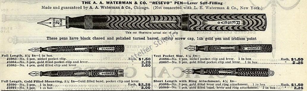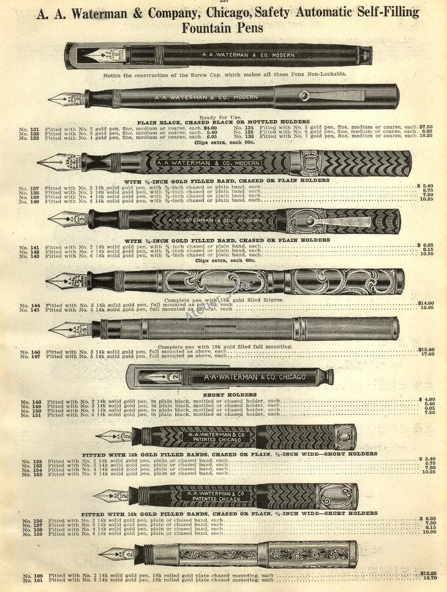 Stilourile asociate cu AA Waterman: Standard, Resevo, Modern, Colonial.