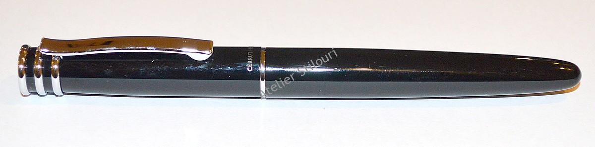 13/06/2020Unul din exemplarele frumoase de la Cerruti 1881, metalic, cu specificul modelului – ring top. Lacul extrem de atragator de pe stilou si capatul stiloului in profil rotunjit ii dau un farmec aparte. Accentele sunt metalice, cromate.