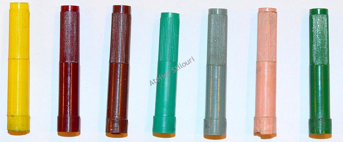 Piesele de aici au fost colectate de pe stilouri rupte sau complet nereparabile, toate produse la Flaro, si sunt acum in cutiile pentru piese de schimb. Evident, nu sunt utilizabile in alte stilouri produse in Romania, in principal pentru ca doar Flaro Sibiu a folosit acest sistem de incarcare. Archimet de exemplu a folosit alt concept si design pentru stilourile sale, as spune mult mai bune ambele, versus cele folosite la Flamura Rosie/Flaro Sibiu.Si aici ma intreb: de ce Archimet putea scoate pe piata produse clar mai bune decat Flaro, iar Flaro ramanea prins in eterna si enervanta platitudine a modelelor ?