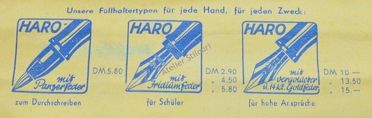 Stilourile HARO erau deja in productie in 1937, din material plastic modern injectat, si vreo 80% din productie au fost exportate in Europa, America de sud, Africa de sud si China. In razboi, fabricile Haro au fost distruse, dar Roggenbuch a luat’o de la capat, infiintand in 1948 o noua fabrica in Regensburg, Germania federala.