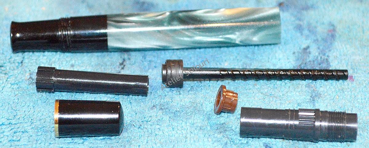 16/05/2021Modelul M200 marbled de la Pelikan, venit pentru reparatie piston. A fost fortat si blocat in pozitia in care se vede in fotografie. Inca o data, daca se poate, o sugestie: nu fortati pistonul. Daca simtiti ca s'a oprit in cursa spre jos, sau la revenire, nu fortati. Este foarte posibil ca garnitura sau axul elicoidal sa se fi blocat, si fortarea duce inevitabil la ruperea internelor.