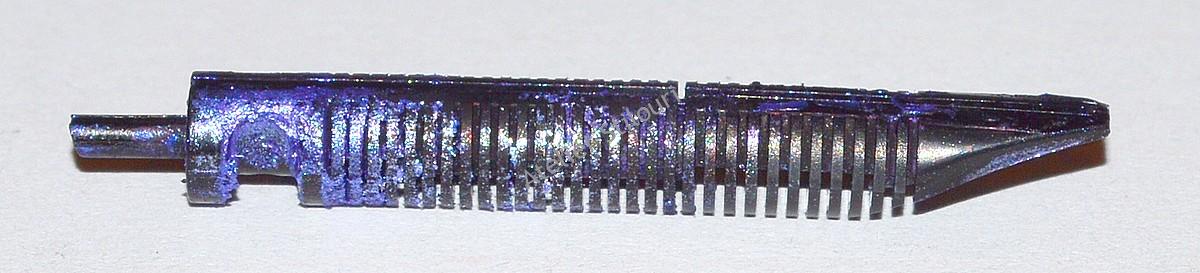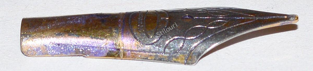 Feedul si penita sunt afectate de coroziune si depuneri, ceea ce explica problemele cu care a venit stiloul in atelier. Dupa ce vad, se poate ca stiloul sa fi fost incarcat cu cerneala de tip "glitter", care este o cerneala ce contine (pe langa cerneala propriu-zisa, si pigment in suspensie). Daca nu este curatat la timp, suspensia se depune grosier pe interne, si practic blocheaza ambele piese (penita si feedul). Penita este corodata, si chiar daca opresc coroziunea, aceasta va continua sub statul cu care este placata.