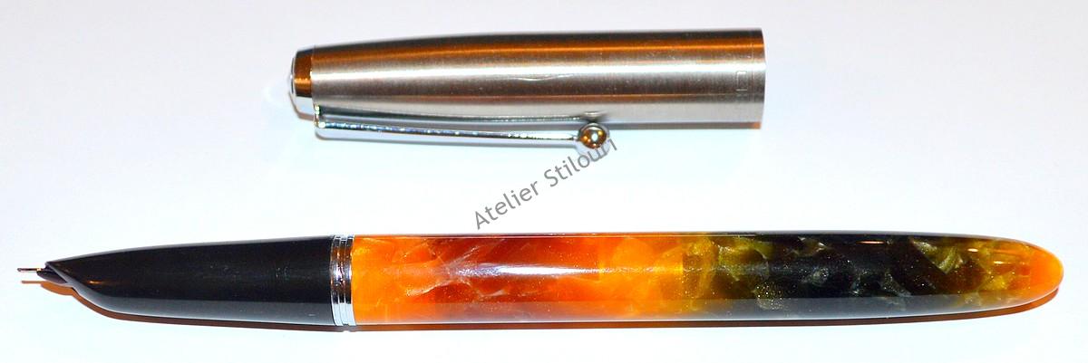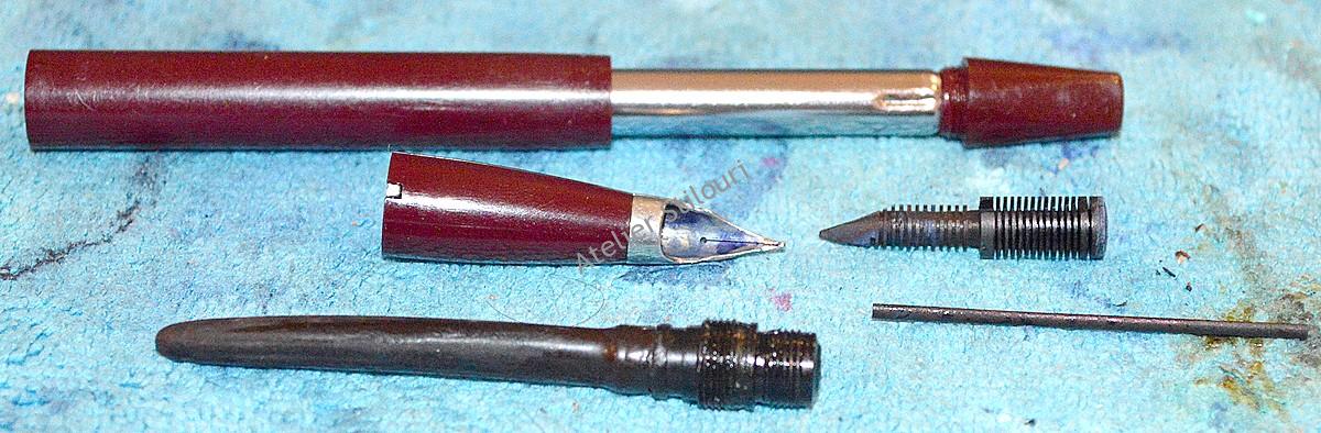 Feed uzat, se rasuceste in penita. Sac neconform, de pe un stilou probabil chinezesc, prea gros pentru a asigura un vacuum corect. Lipsa tub port-sac, piesa esentiala la un touchdown.