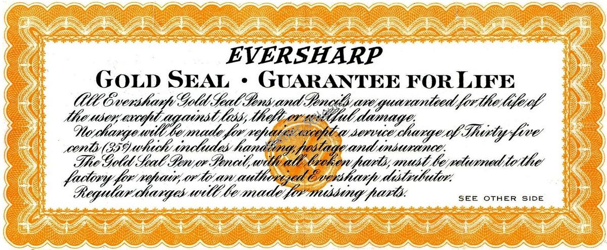 1928 – apare modelul Gold Seal, indicand o garantie pe viata, ca un fel de alternativa la White Dot de la Sheaffer. Gold Seal va ramane in productie pana la aparitia modelului Skyline. Se intalnesc uneori stilouri WE cu sigiliul gaurit; este forma de anulare a garantiei, daca fusese trimis in reparatie si garantia executata.