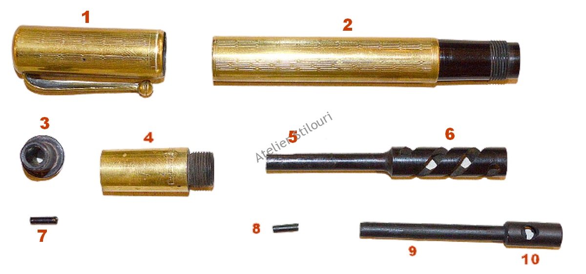 20/09/2021Waterman model Safety 18k, aproximativ 1920's. Gold rolled 18kt, venit in atelier pentru o restaurare a sistemului de incarcare. Lipsa penita si feed, spirala rupta, lipsa pini ebonita pentru locking tija pe spirala; au fost procurate piese originale din stocul atelierului si montate pe stilou. Garnitura a fost inlocuita cu una de pluta, conform originalului.